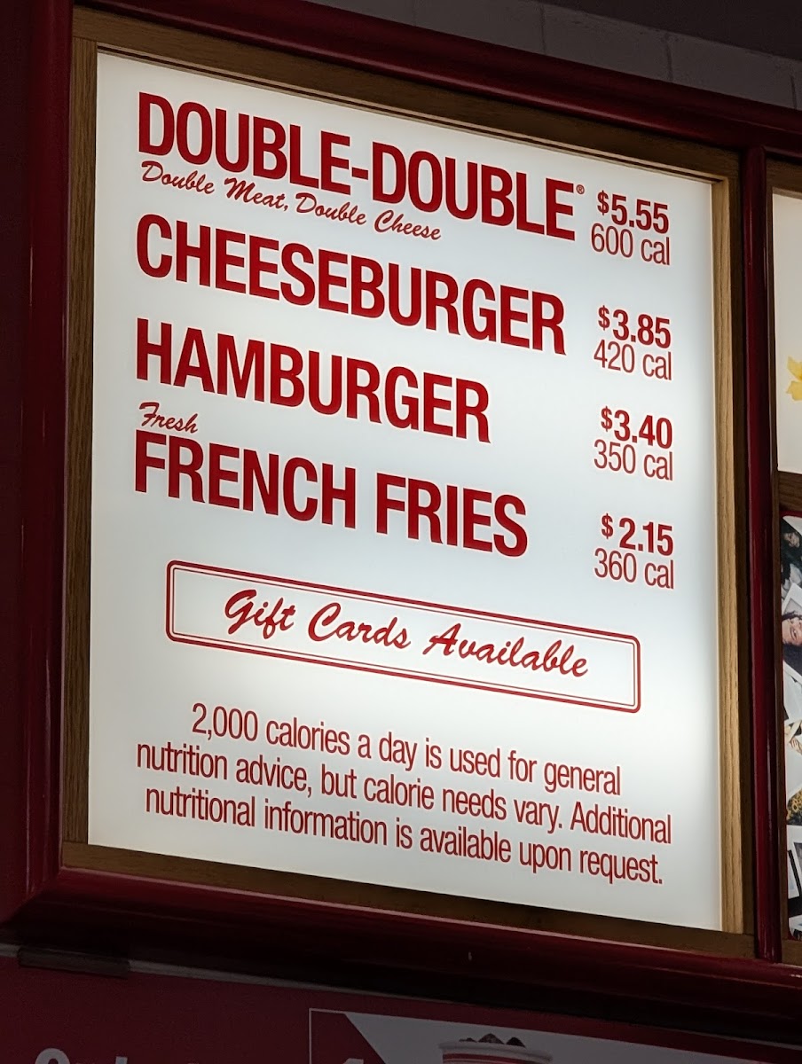 “ What a place! The service here is next to none! There are so many employees here and they all have different tasks. The restaurant is extremely clean and the food was delicious. The burgers and french fries are made fresh and you can tell. I got the double double animal style and animal style fries and both were delicious! The price was also extremely fair, especially in a time when other fast food place's prices are skyrocketing. ”